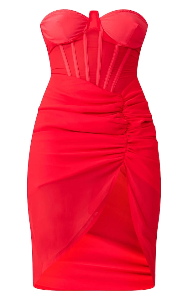 Shape Robe-corset mi-longue sans manches rouge à fronces