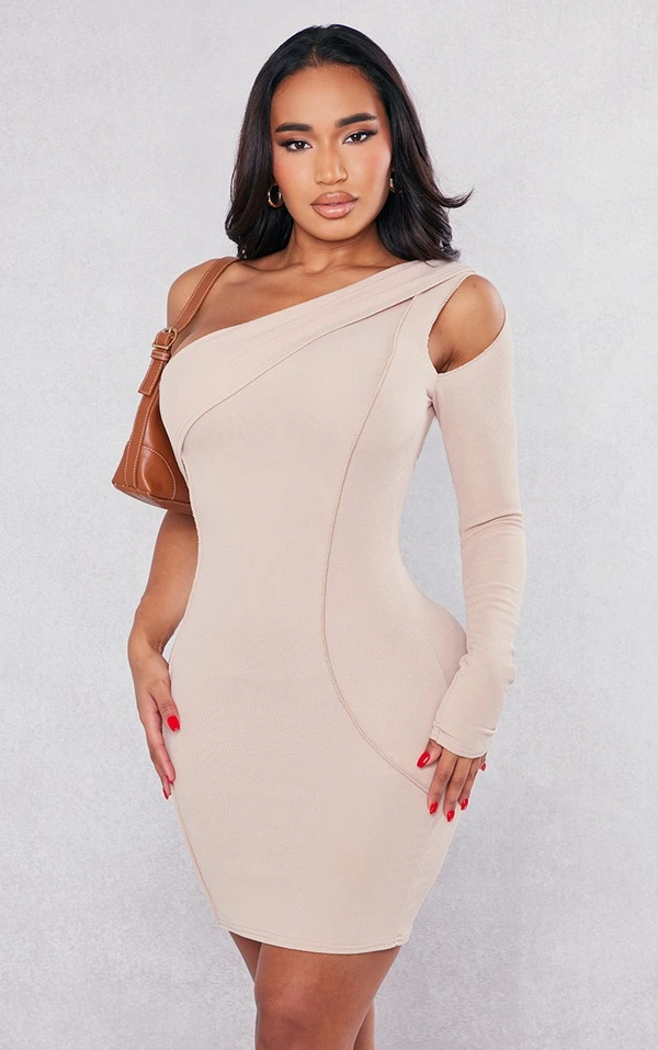 Shape Robe courte asymétrique gris pierre à détail coutures