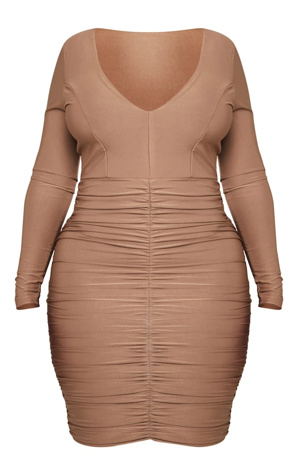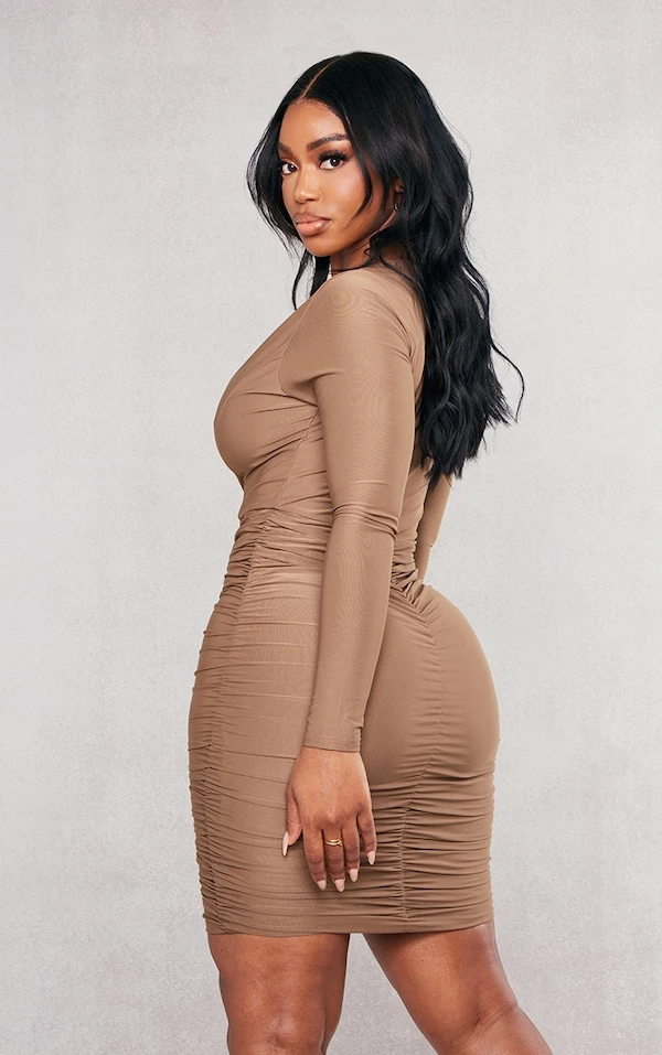 On craque pour cette robe courte ! Avec son design moulant, sa couleur taupe et son effet froncé, elle fait un sans-faute. On aime la porter avec une paire de talons lacés et quelques accessoires pour attirer tous les regards en soirée. Gorgeous !