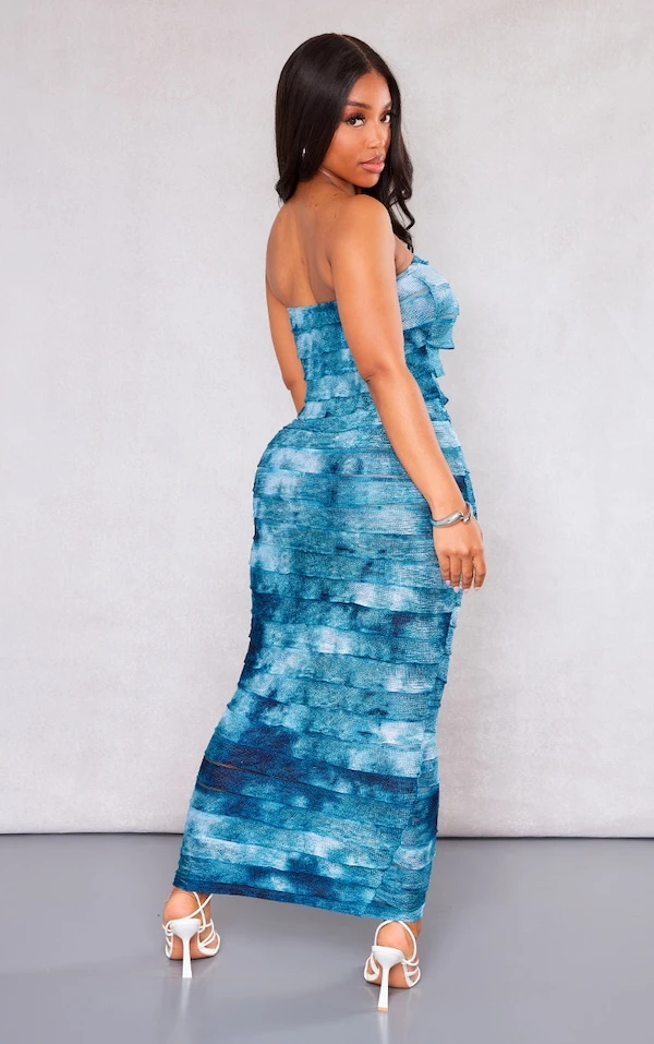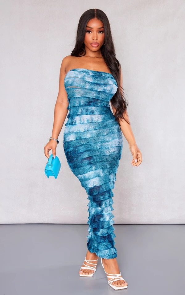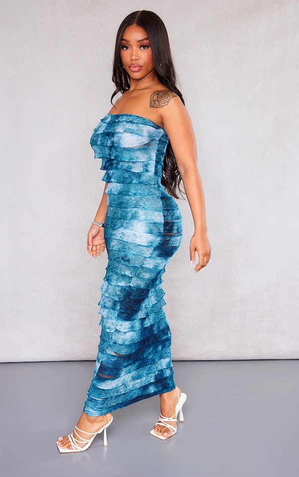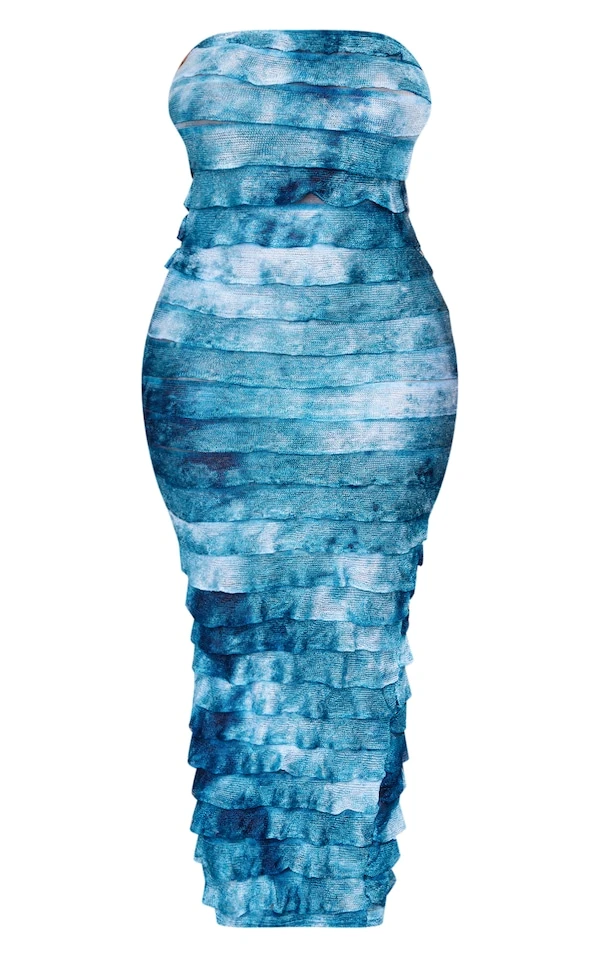 Shape Robe longue bustier ombrée bleue à ourlet volanté
