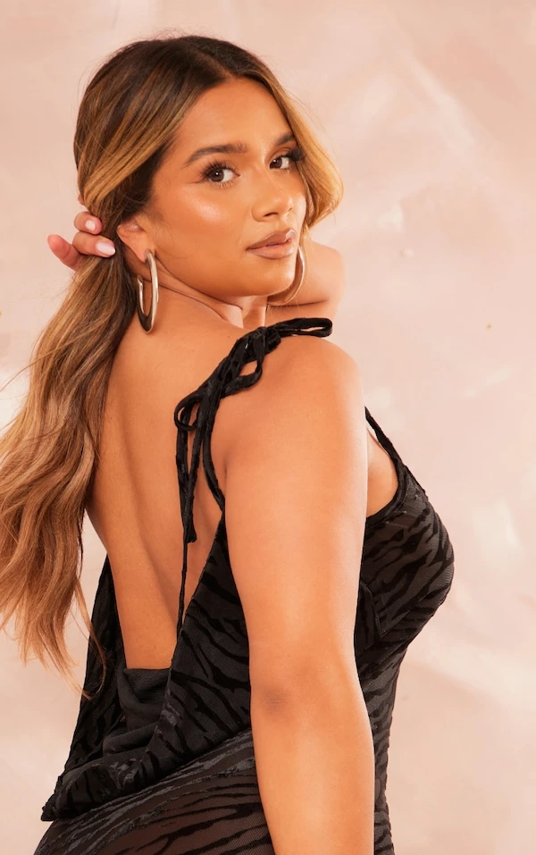 En amour avec cette robe à la coupe longue. Avec l’effet dévoré de sa matière, sa couleur noire qui se porte avec tout et son design à bretelles nouées, on l’adore. Pour vous démarquer en soirée, portez cette robe avec une paire de mules et quelques accessoires. Vous avez tout compris à la mode, vous !