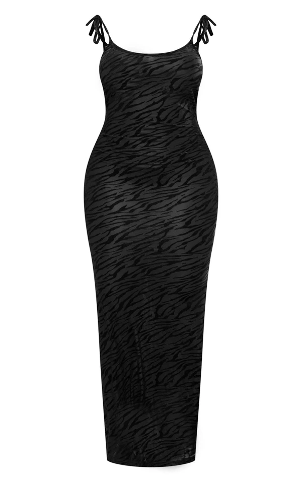 Shape Robe longue dévorée noire à bretelles nouées/strong>