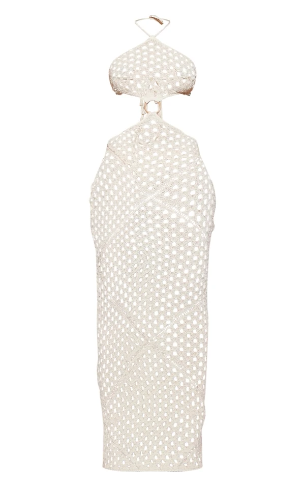 Shape Robe longue en maille crochet new nude découpée à détail anneau