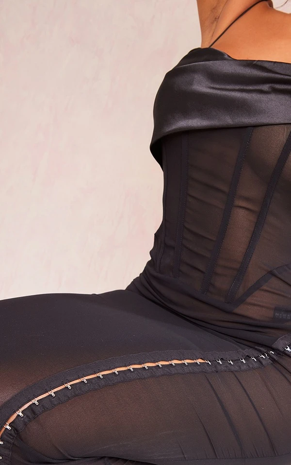 Shape Robe longue en mesh noir à détail agrafes et oeillets