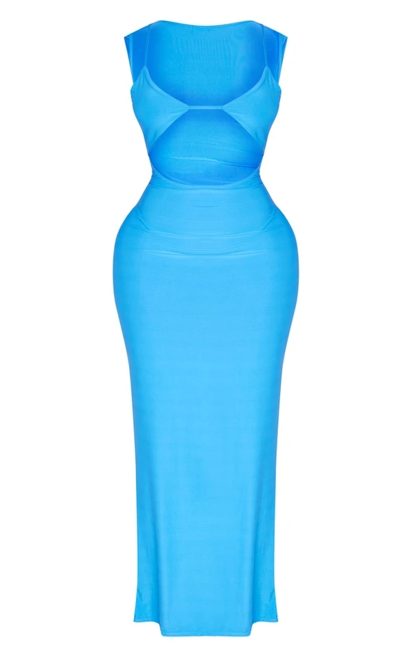 On craque pour cette robe longue ! Avec sa coupe moulante, sa couleur bleu vif et ses découpes, on l’adore. Il vous suffit de la porter avec une paire de sandales à talons et quelques accessoires et le tour est joué. Crush sur vous !