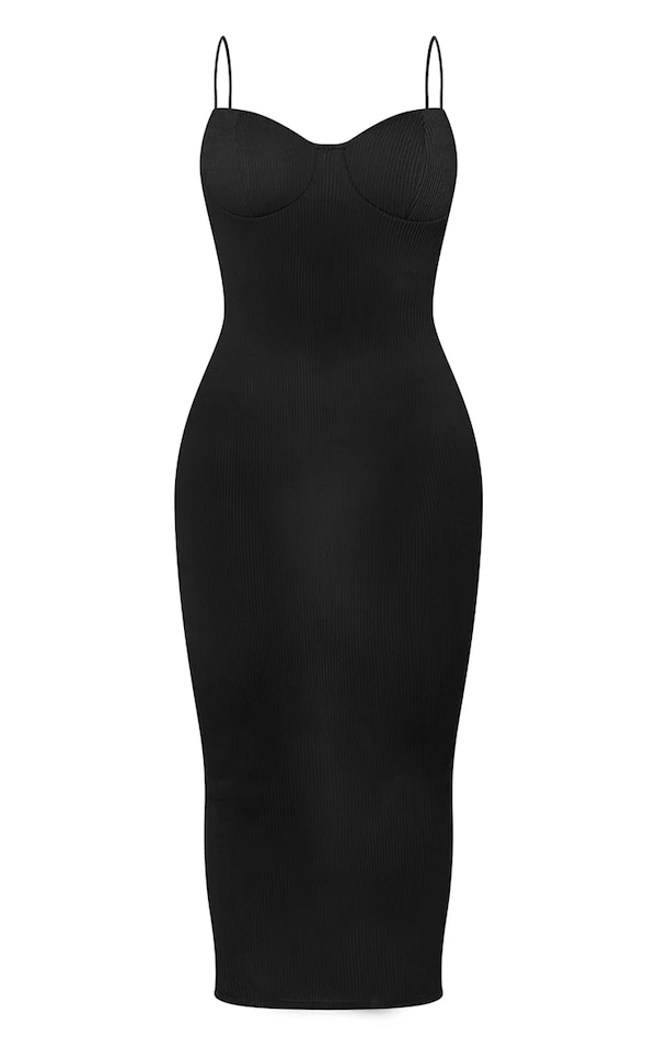 Shape Robe longue plissée noire à bretelles et détail bonnets
