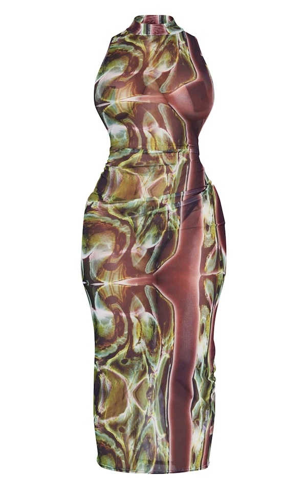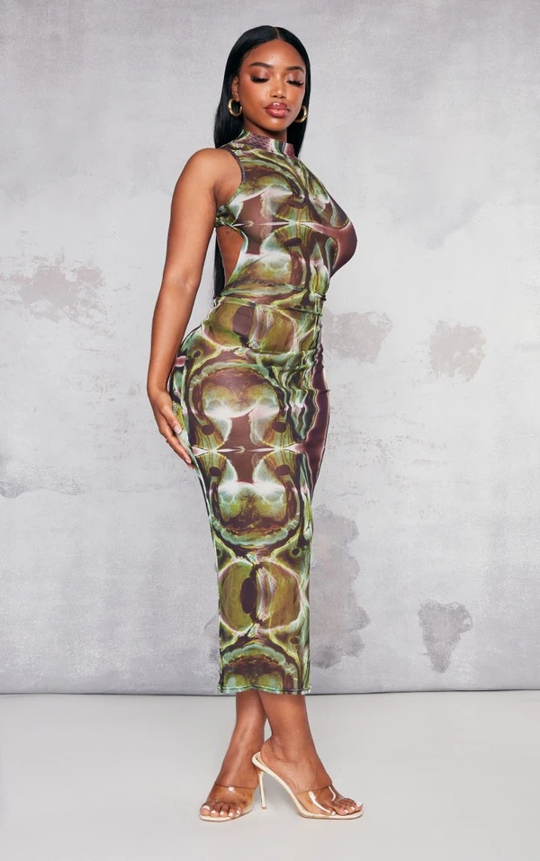 Shape Robe longue sans manches en mesh transparent découpé kaki imprimé reptile