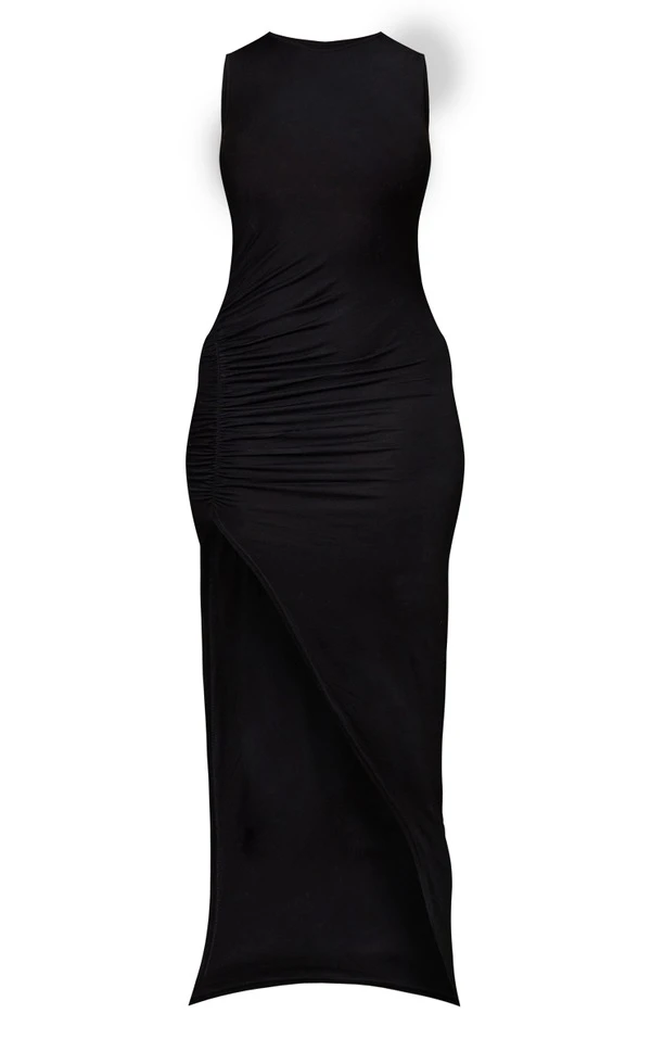 Shape Robe longue sans manches noire en jersey froncé