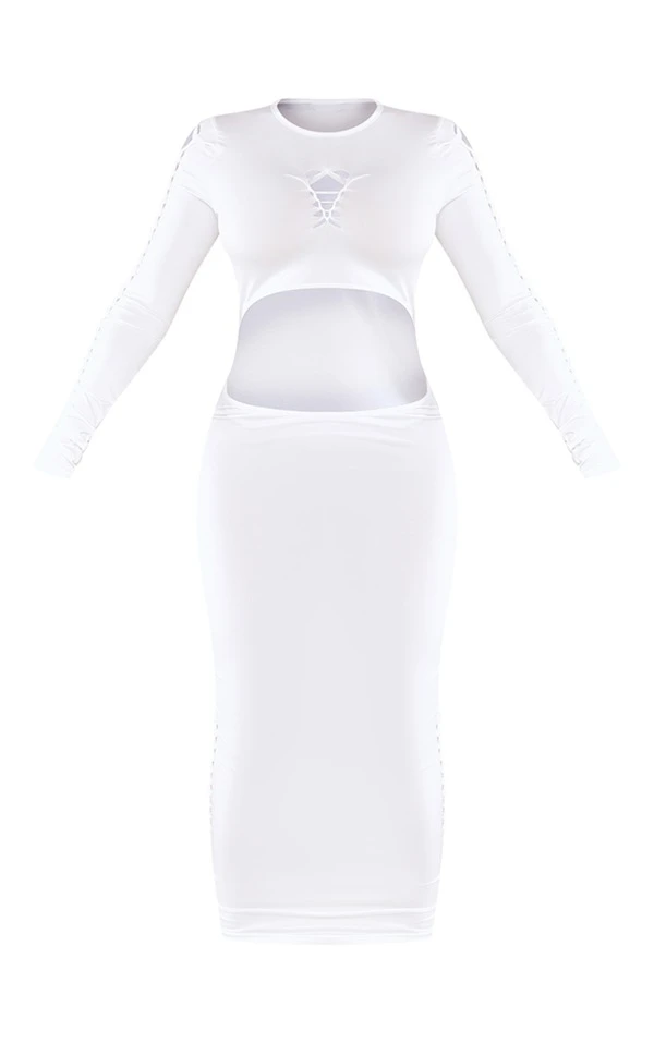 On craque pour cette robe mi-longue ! Avec sa couleur blanche, sa matière douce et ses découpes canon, elle a tout d’une pièce culte. Il vous suffit de la porter avec une paire de talons et quelques accessoires pour un look de soirée 100% validé. Love it !
