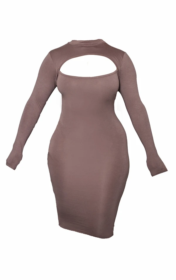 Shape Robe mi-longue en jersey café au lait à découpe et manches longues