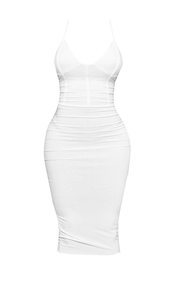 Les robes mi-longues sont in en ce moment et LA solution en cas de panne d’inspi pour une soirée entre copines. On adore le coloris blanc, le décolleté plongeant et le détail contraste. On la porte avec des talons transparents et des accessoires, un sans faute fashion!