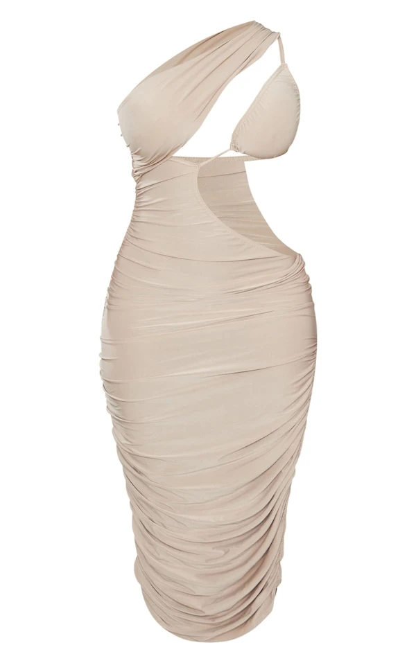 Shape Robe mi-longue moulante café au lait découpée froncée sur le côté à bralette