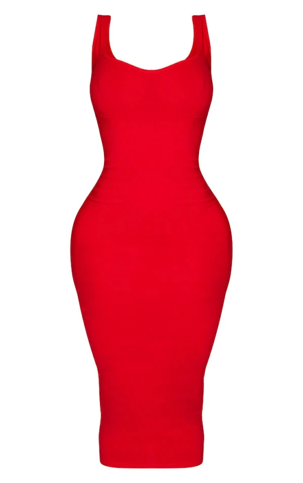 Shape Robe mi-longue rouge à détail bonnets et bretelless