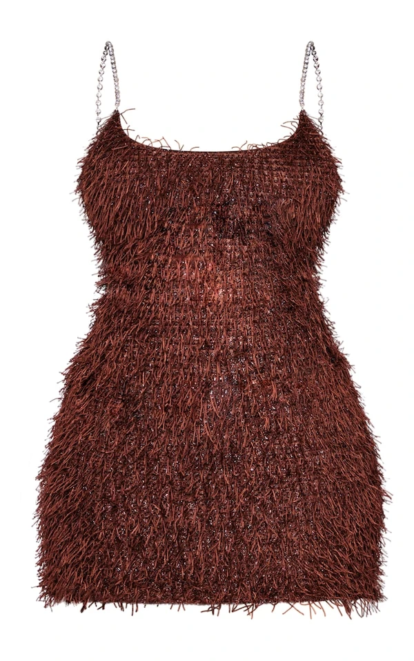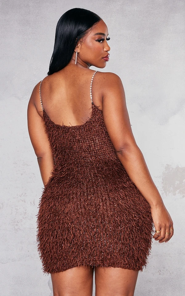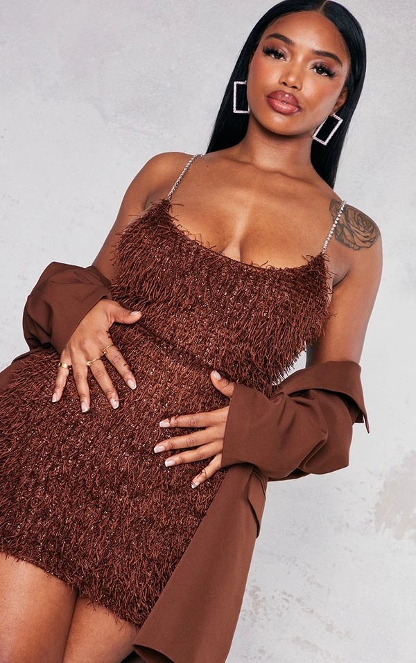 Prête pour la prochaine soirée avec cette robe moulante ! On adore sa couleur chocolat gourmande, ses paillettes texturées et ses bretelles strassées. On vous conseille de la porter avec une paire de talons et quelques accessoires pour un look de soirée qui fera tourner toutes les têtes. Go faire une entrée remarquée !