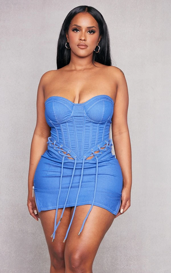 Shape Robe moulante bleue style corset à détail lacets cordes