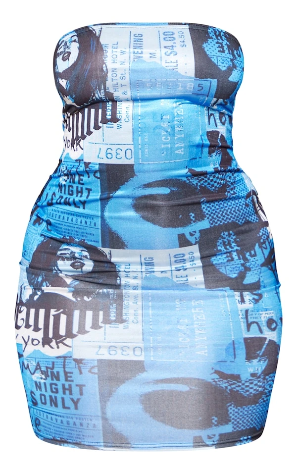 Toujours au courant des dernières news dans cette robe ! On adore son style moulant incroyablement flatteur, sa coupe bustier et son imprimé journaux de couleur bleue. Elle se porte avec une paire de talons hauts et des créoles XXL. Ce look est magnifique !