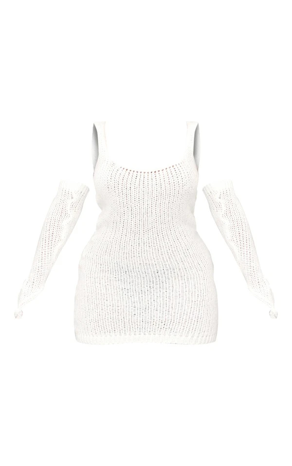 Shape Robe moulante crème en maille tricot à col carré et épaules dénudées