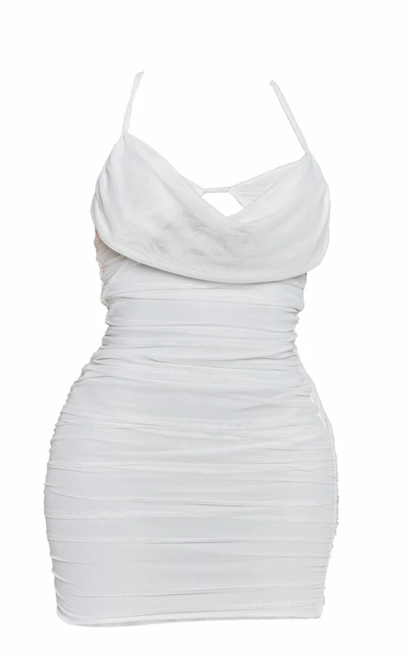 Shape Robe moulante en mesh blanc à col bénitier et fronces détail bralette