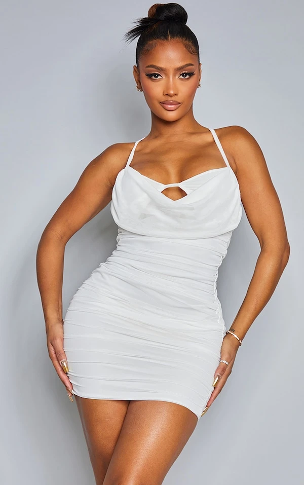 De toute beauté dans cette robe en mesh froncé de couleur blanche. Avec sa coupe moulante, son design à bralette et son col bénitier, on la porte avec des sandales et quelques accessoires. Le look est parfait pour célébrer les beaux jours qui font leur grand retour !