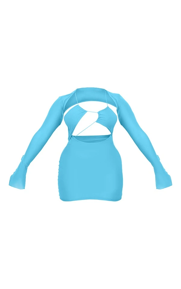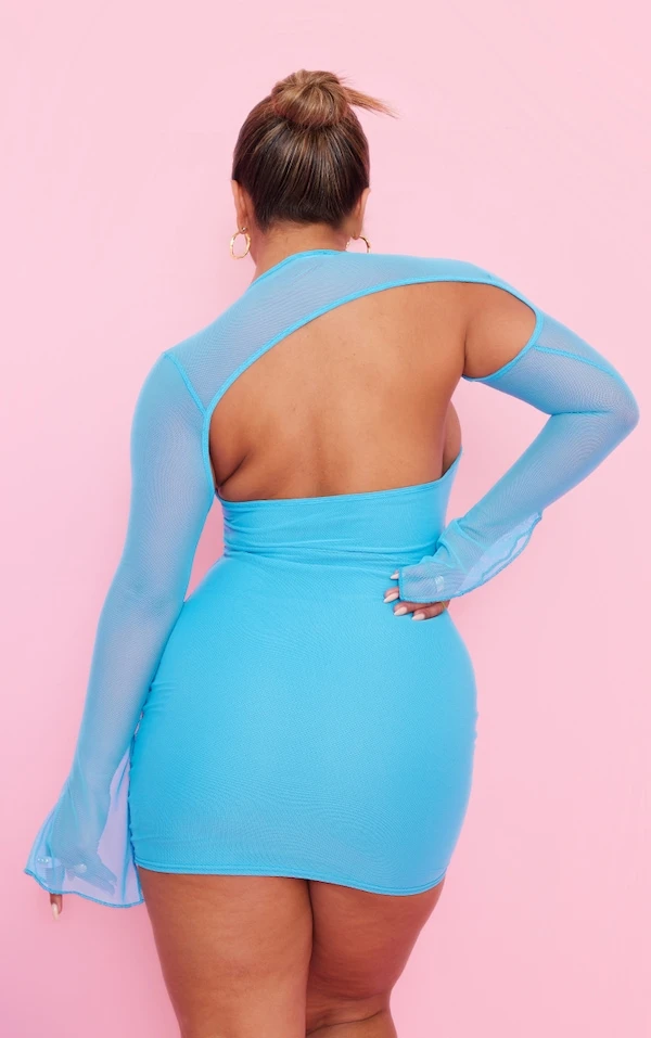 Shape Robe moulante en mesh bleu turquoise superposé à lacets
