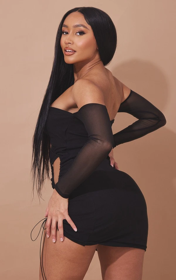 Shape Robe moulante en mesh noir découpée à épaules dénudées et lacets
