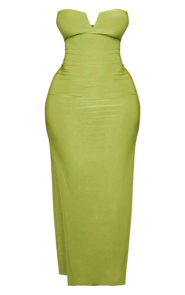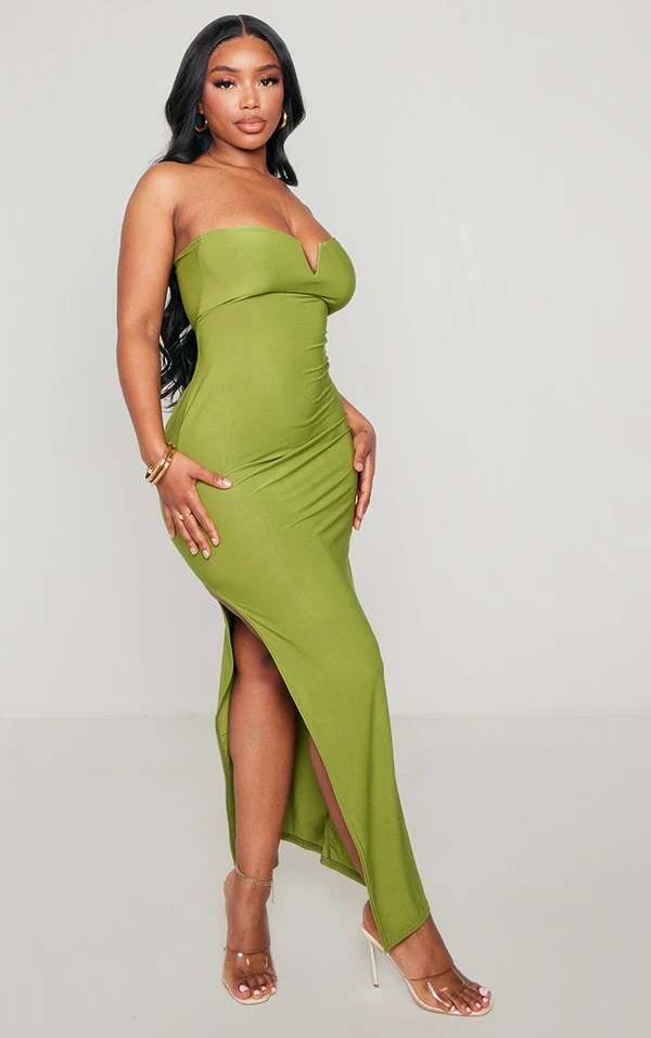 En amour avec la coupe moulante de cette robe mi-longue. Avec la couleur vert olive super tendance de sa matière et son design à barre en V, on l’adore. Pour une soirée, enfilez cette robe avec une paire de sandales lacées et quelques accessoires. Vous avez tout compris à la mode, vous !