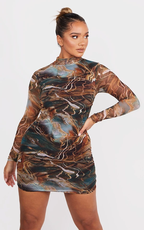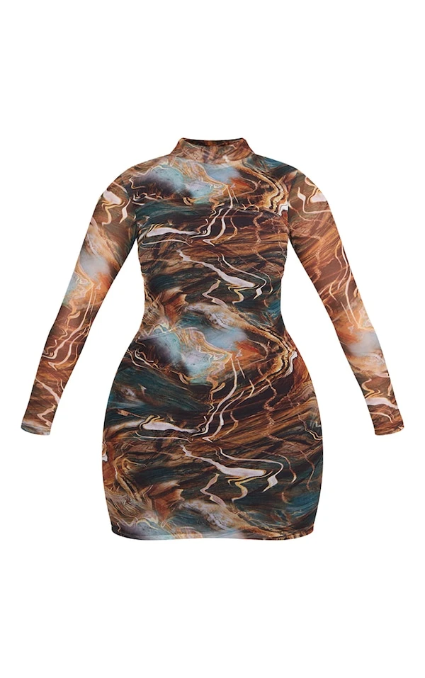 Shape Robe moulante multicolore en mesh imprimé marbre à col haut