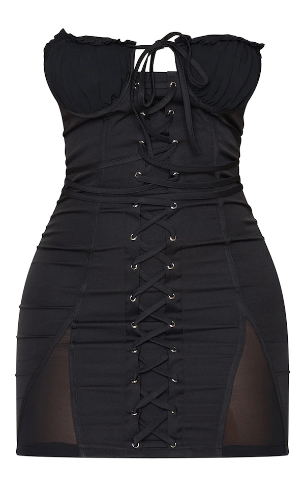 Shape Robe moulante noire à détail bonnets et lacets