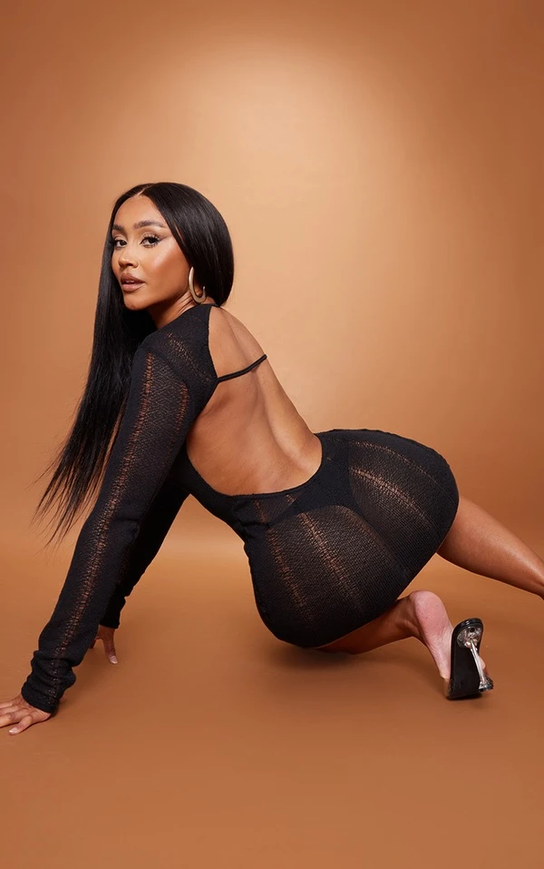 Divine dans le coloris noir de cette robe moulante. Avec sa matière transparente au design ajouré et son dos ouvert, elle a tout pour plaire. C’est à porter avec une paire de mules et quelques accessoires pour un look sans faille qui vous va si bien. Queen, vous !