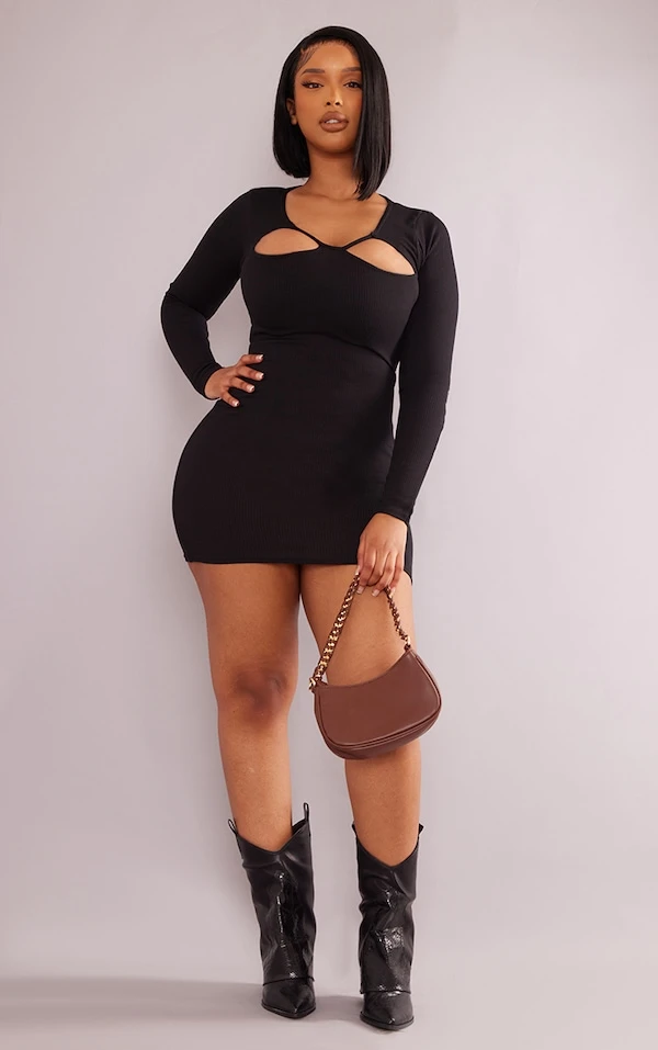 Simple et pratique la robe noire ! Avec sa coupe moulante, ses manches longues et ses découpes sur le décolleté, elle s’enfile facilement pour n’importe quelle occasion. On la porte avec des bottes et un sac pour un date. Vous êtes magnifique !