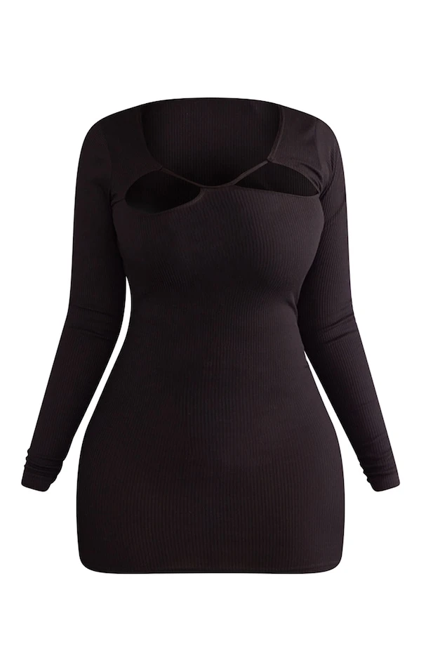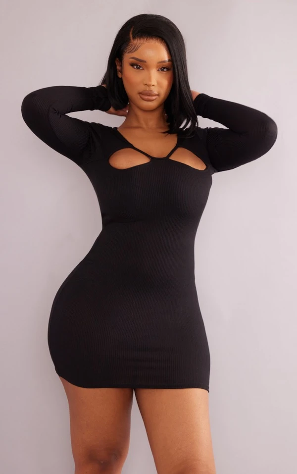 Shape Robe moulante noire côtelée à découpes et manches longues