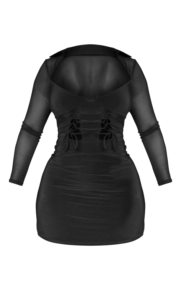 Shape Robe moulante noire lacée devant en mesh à manches longues