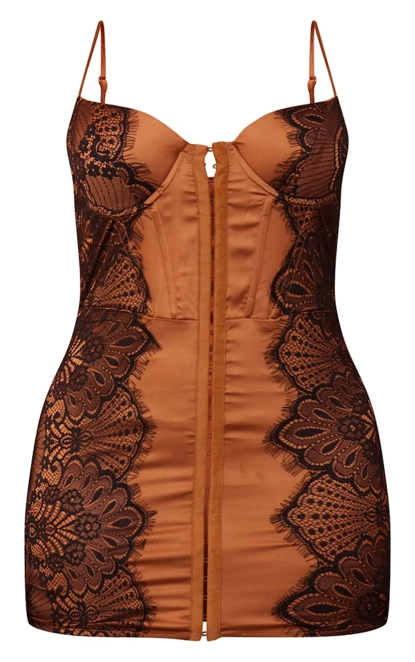 Shape Robe moulante satinée café au lait lacée à agrafes et oeillets