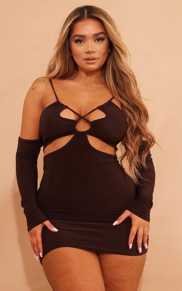 Shape Robe très moulante marron chocolat à lacets et épaules dénudées