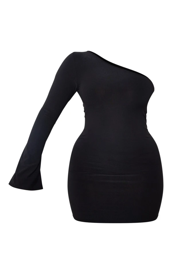 Coup de foudre pour cette robe ! Avec sa matière très moulante noire, son design à manche asymétrique évasée et sa coupe près du corps ultra sexy, on en redemande ! C’est à porter avec des talons hauts et des boucles d’oreilles dorées pour être au top ce week-end.