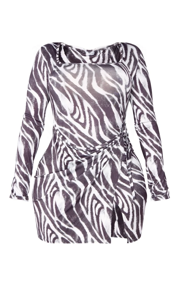 Shape Robe très moulante portefeuille noire zébrée à col carré