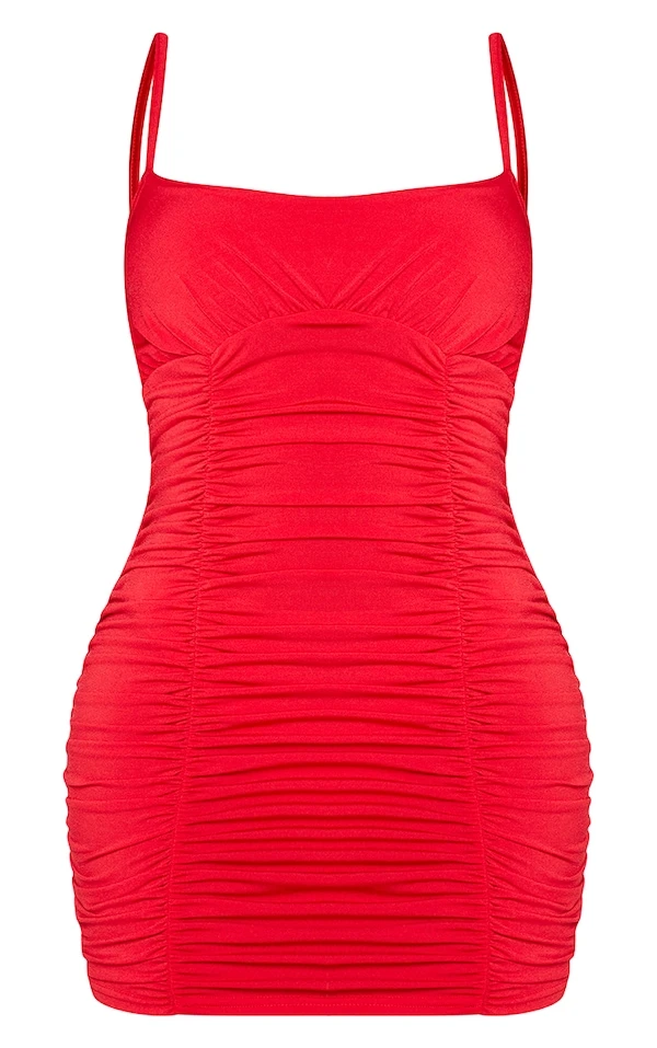 Fire la robe slinky de couleur rouge, on est tellement fans. Avec son design froncé et sa coupe près du corps, elle se porte avec des talons et quelques accessoires.