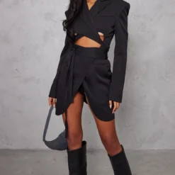 Divinement belle, dans cette robe blazer ! Avec sa couleur noire incontournable et son design à lien noué, elle nous fait crusher en quelques secondes. Pour finaliser le tout, il n’y a plus qu’à ajouter des bottes hautes noires et quelques accessoires. Easy, non ?