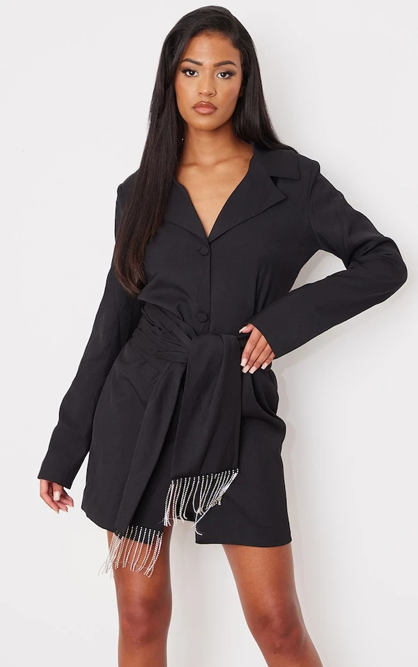 In love de cette robe blazer ! Avec sa couleur noire et son effet noué à la taille, comment ne pas craquer ? Elle se porte avec une paire de talons pour un look glam qui fait son petit effet au bureau comme en soirée. Gorgeous !