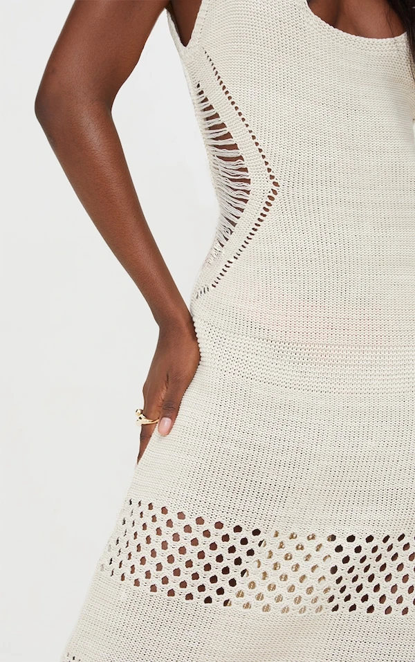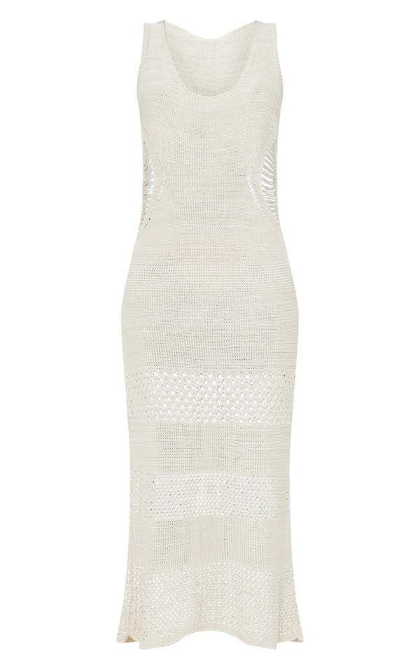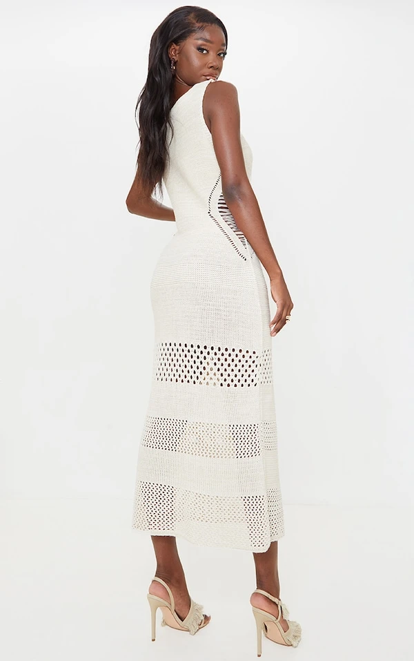Tall Robe longue en crochet crème à décolleté
