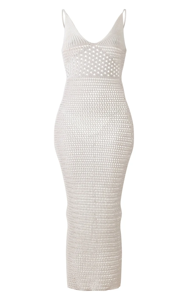 Tall Robe longue en maille tricot beige à bretelles