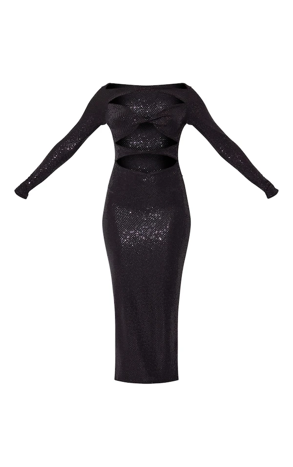 Canonissime cette robe ! Avec sa couleur noire indémodable, ses sequins brillants et ses découpes à l’avant, elle réalise un sans-faute. On la porte avec une paire de talons pour un look de soirée qui se remarque. Vous brillez !