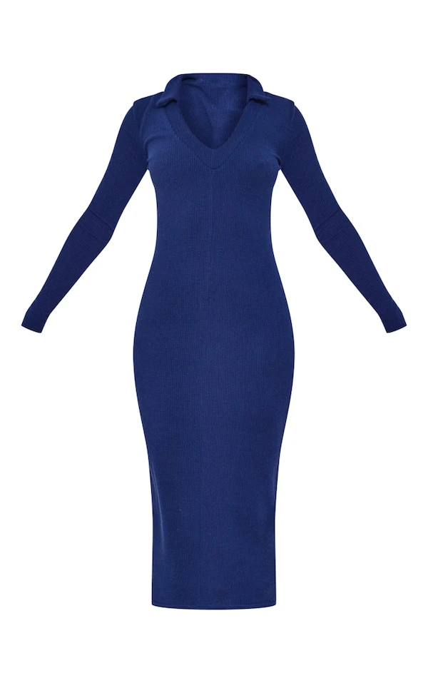 Tall Robe mi-longue style polo bleu marine foncé à décolleté plongeant