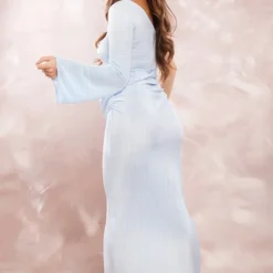 Maternité Robe De Grossesse Asymétrique Longue Bleue Effet Plissé