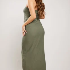 Maternité Robe De Grossesse Bustier Longue Texturée Vert Olive