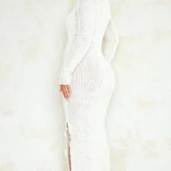 Maternité Robe De Grossesse Asymétrique Blanche à Fronces Et Sequins