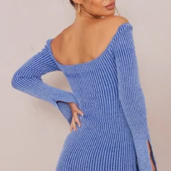 Maternité Robe Corset De Grossesse En Maille Tricot Contrastantée Bleue