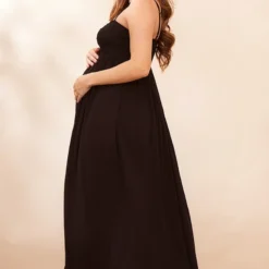 Maternité Robe De Grossesse Longue Noire En étamine à Bretelles Et Détail Bonnets